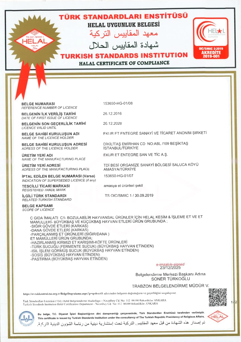 Tedarikçilerimize ait helal et üretim sertifikalarını aşağıda görebilirsiniz.