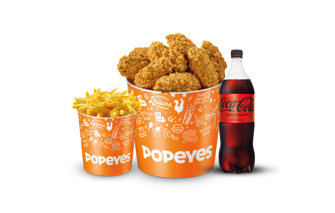 4 TavukBurger + 4 Tenders (Kemiksiz) + 4 Acılı Kanat + Kova Boy Patates + 1 L. İçecek